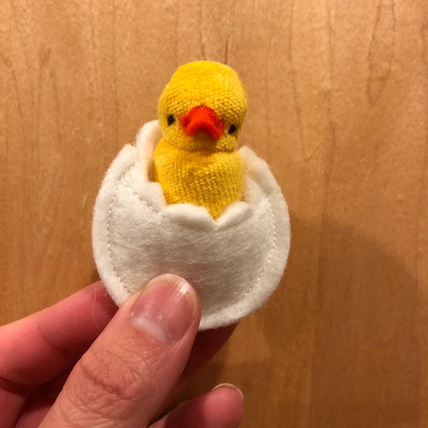• Dimensions: Yellow baby duck is 2.5 inches tall nested in his wool felt egg and a little under 2 inches once out of his egg.