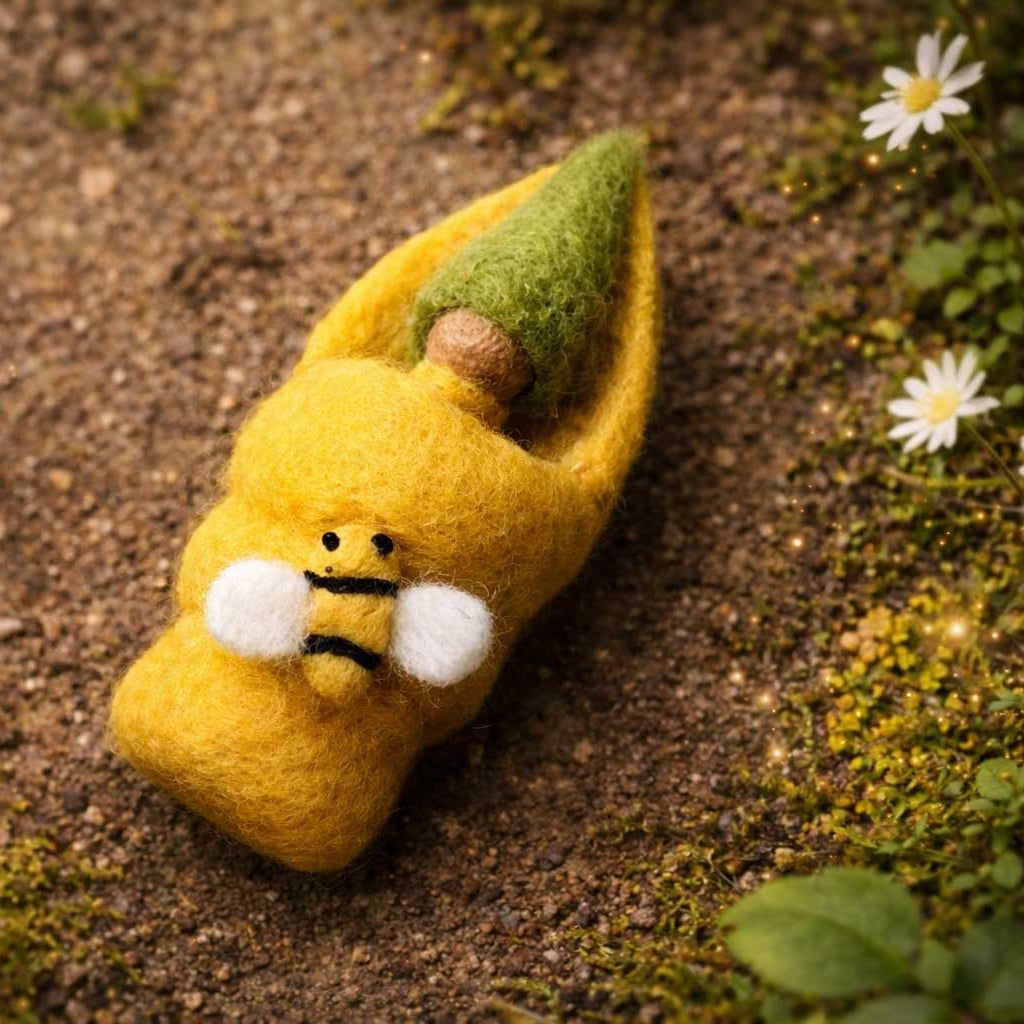 This little baby comes nestled in a sweet felt honeycomb. Handcrafted in high quality felted wool, they come tucked into a honeycomb bed, the baby can be popped in and out of the honeycomb bed.