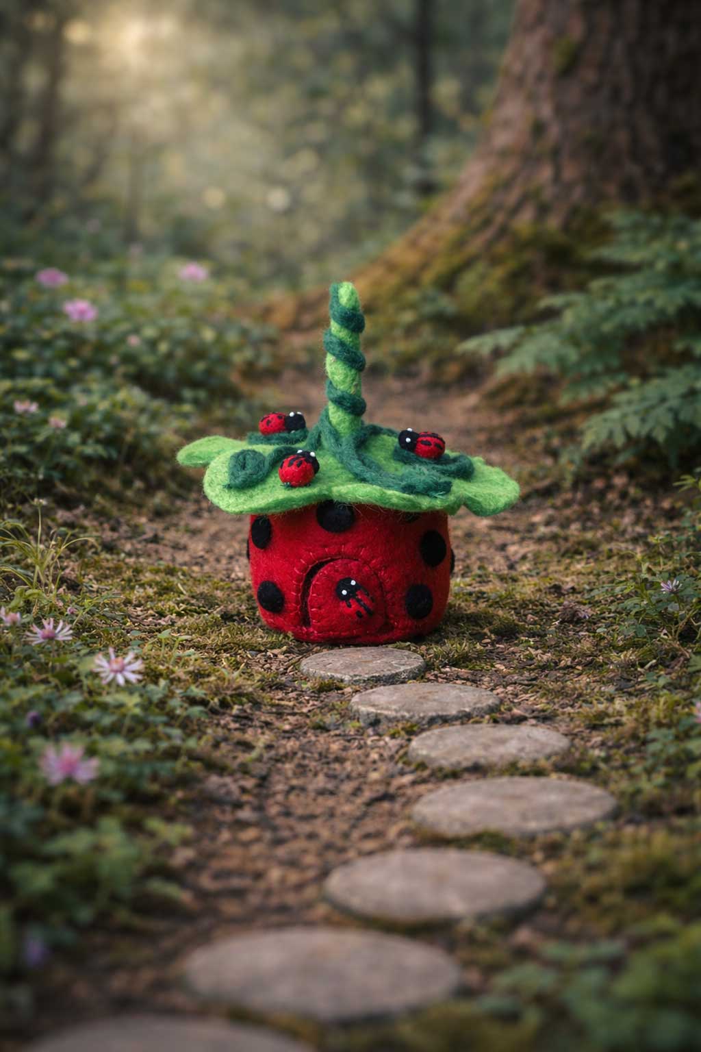 This sweet felt ladybird home features a tiny door which opens and a removable roof--a sanctuary for elves, fairies, and princes.