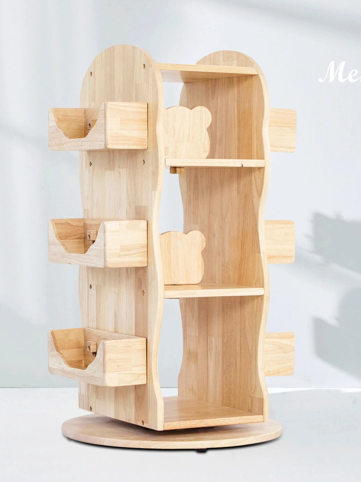 Upgrade your child's reading corner with the Mesasilla Solid Wood Rotating Bookshelf for Kids. Order yours today and create a 360-degree home library experience!