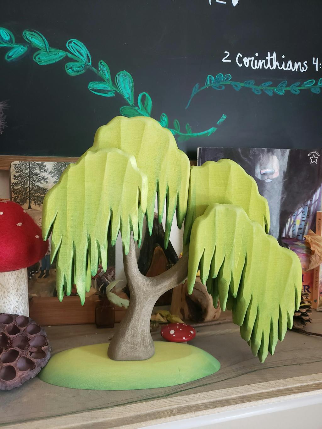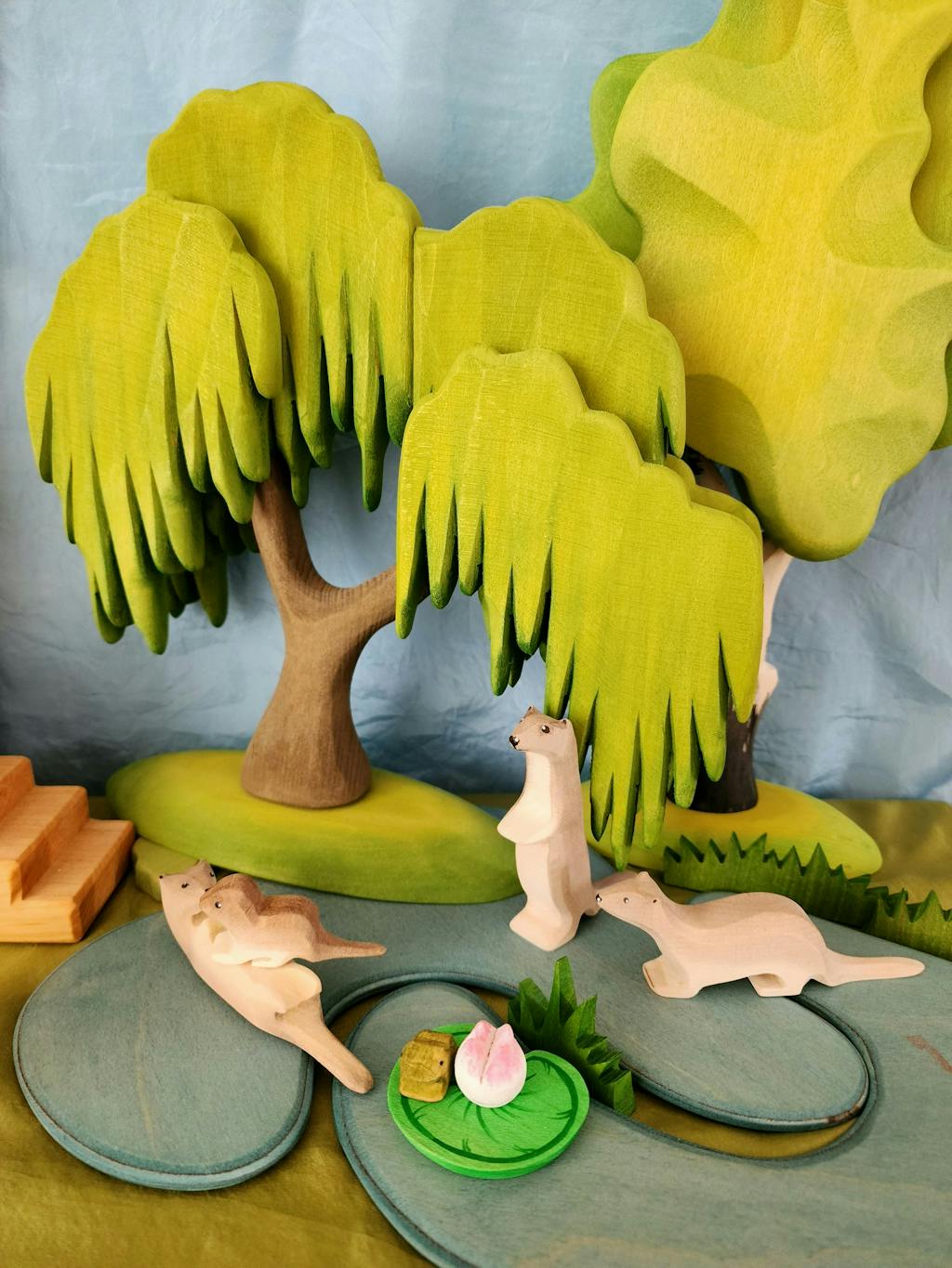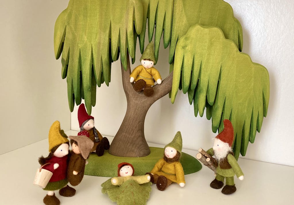 No one embraces the changes that spring brings like a willow. The bright green leaves suddenly come out and cover their branches, new growths everywhere and some very special caterpillars end up enjoying everything!This Bumbu figurine is made of Romanian wood, handmade, in Romania. Each product is a unique piece, designed with love and care. It is polished, painted and greased with water-based paints and organic oils.