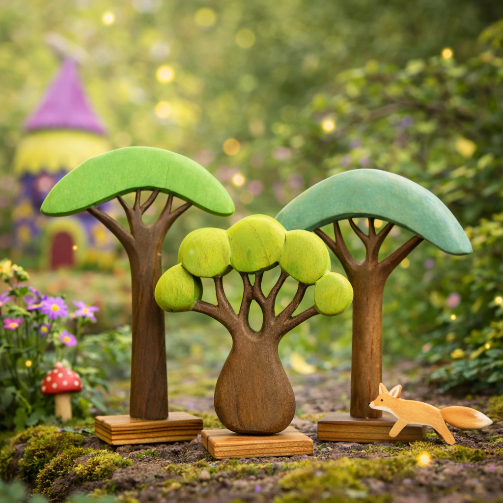 Bring the beauty of the savanna to your small world scenes with the Papoose African Trees – Set of 3. This handcrafted wooden tree set captures the iconic silhouette of African landscapes, making it a perfect addition to wildlife play, storytelling, and geography-inspired learning.