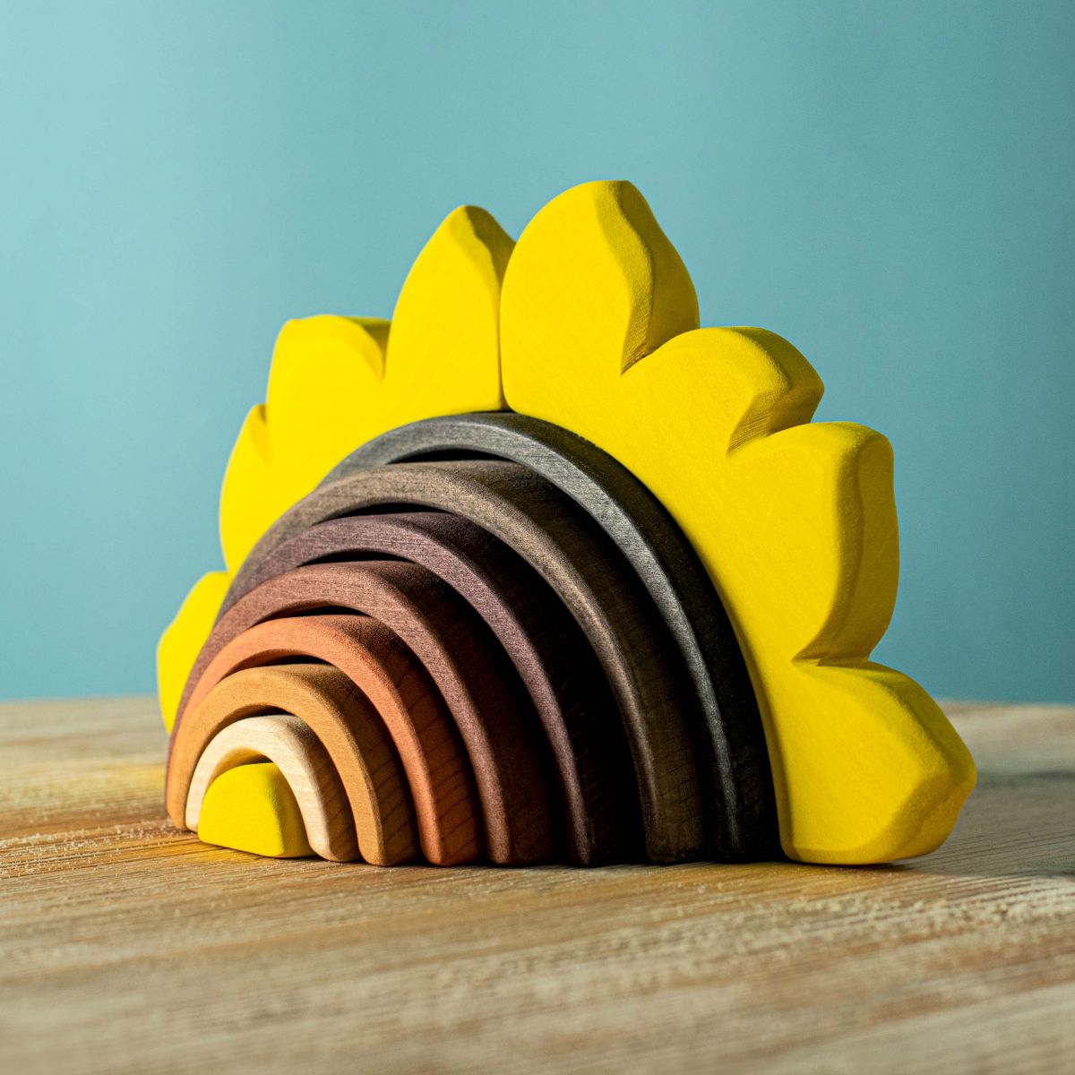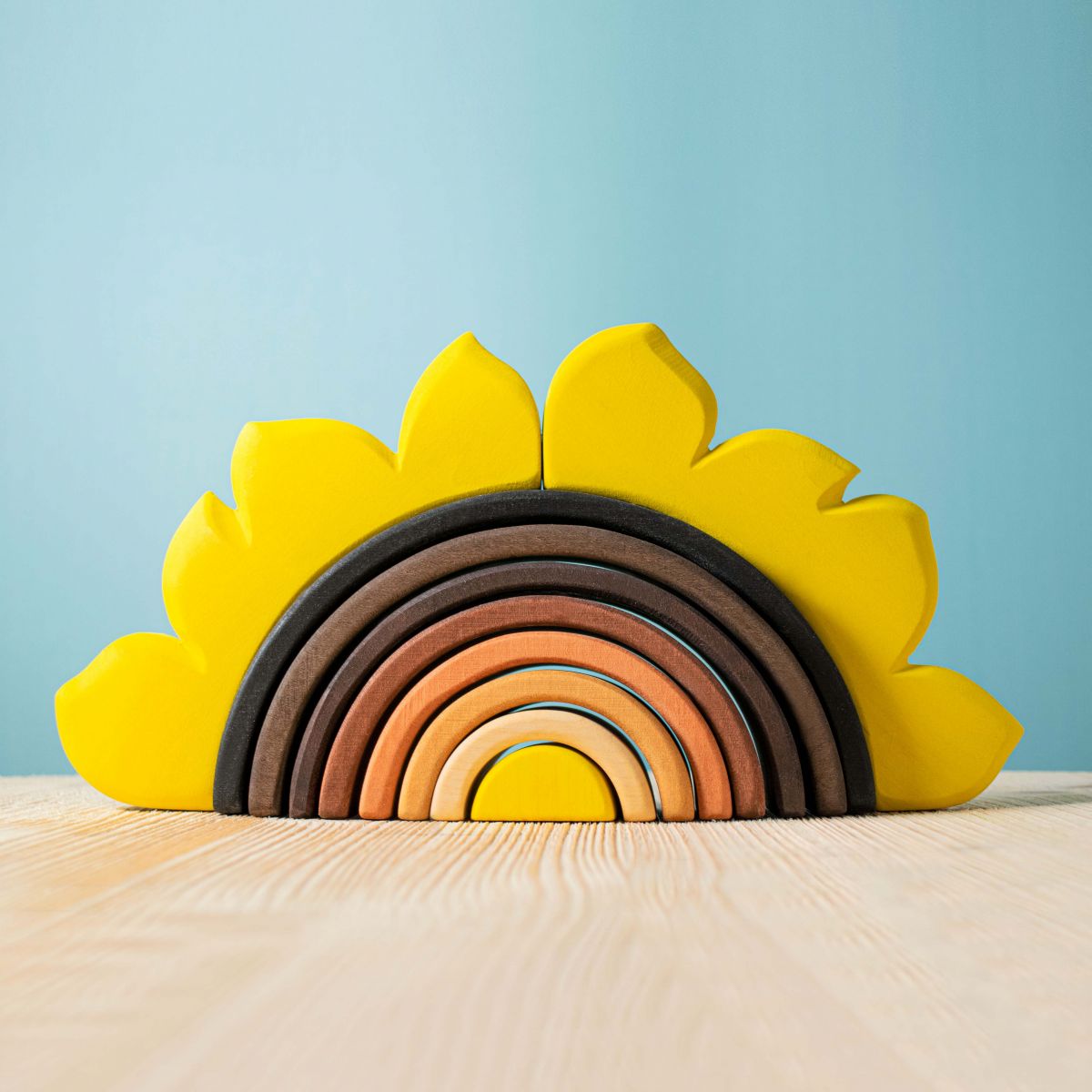 Wooden toys have a special charm, being natural, safe and resistant products, they have educational characteristics. They also are especially designed to stimulate and develop the abilities of children of all ages. You will fall in love with this toy through the simplicity and attention to detail that characterizes us in all Bumbu toys.- The wooden sunflower stack toy is composed of 8 elements