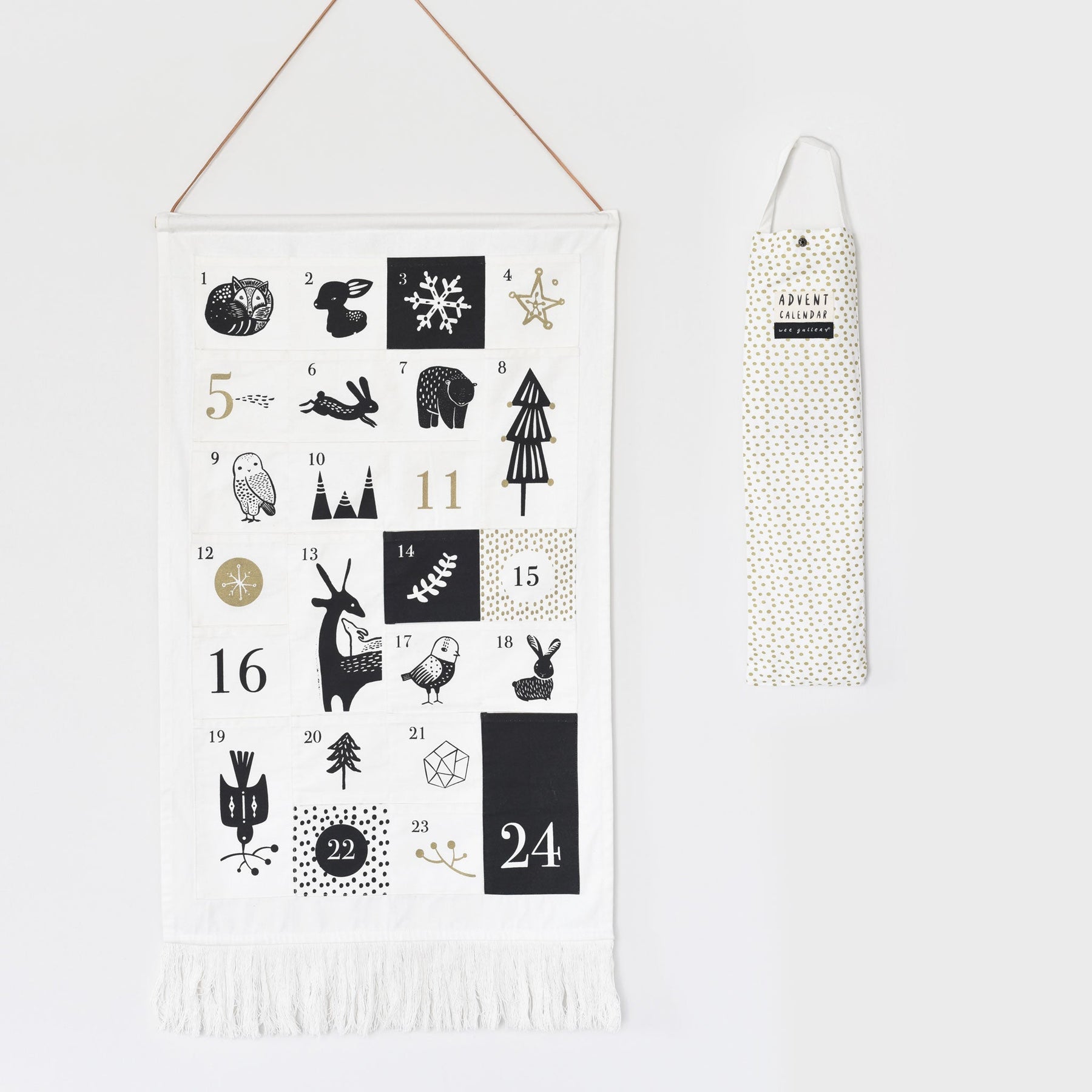Sweet winter animals decorate this Advent Calendar in Wee Gallery's signature hand painted style. Screen-printed on to 100% organic cotton twill canvas fabric with a pocket for each of the 24 days leading up to Christmas. Packaged in a gorgeous keepsake bag that you will look forward to bringing out each year. A perfect addition to your holiday decor and a family tradition that children will enjoy. Made in India using ethical manufacturing practices.