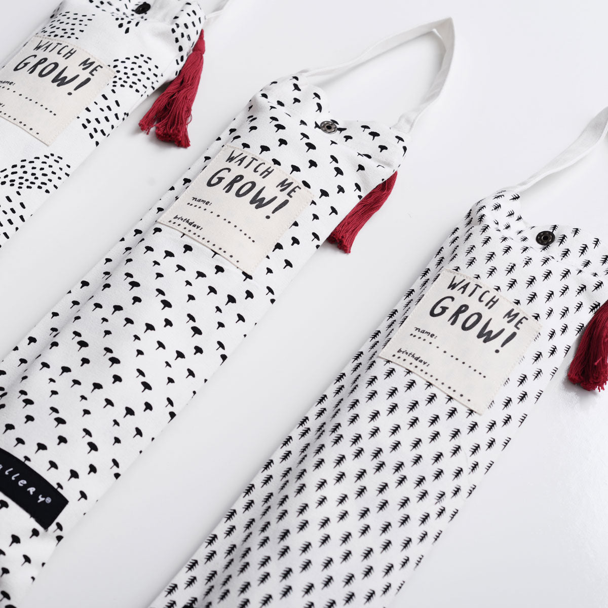 To mark the growth chart, simply write on the canvas with a fine tip marker or fabric pen. Or Download our printable growth chart markers here.