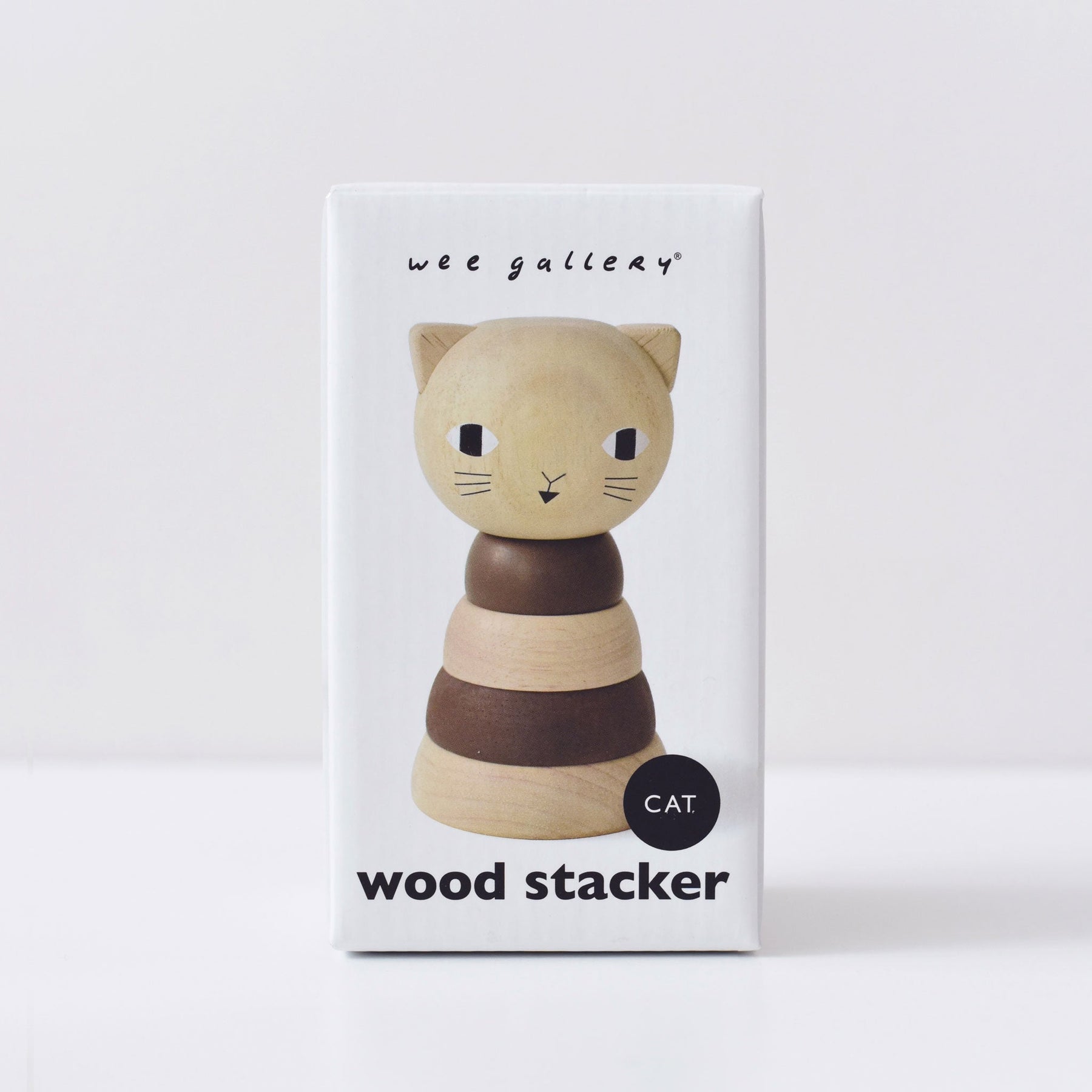 This way, that way, there is no wrong way for creative play! This sweet cat is a classic ring stacker, reimagined in signature Wee Gallery style with a beautiful natural finish. Stack like this and stack like that, the wood rings can be arranged in a variety of creative ways. Promote fine motor development in young children and begin STEM / STEAM building and learning exploration all with this beautifully designed wooden toy.